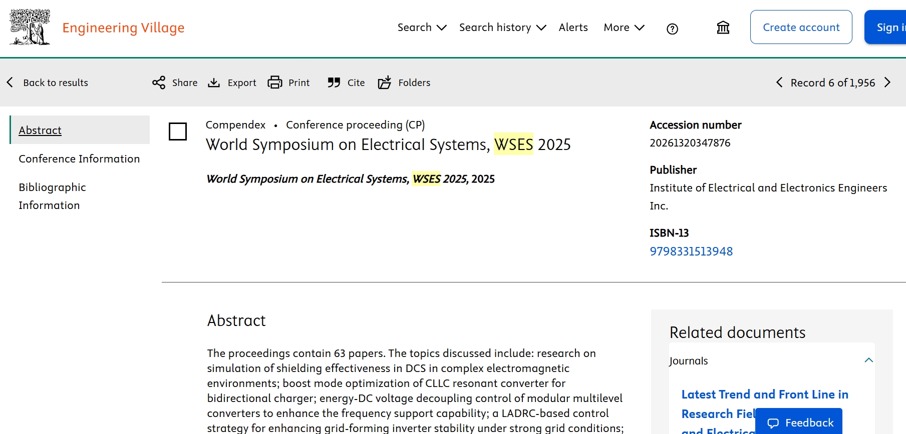 WSES 2025 is listed IEEE Conference Calendar. WSES 2025 进入IEEE